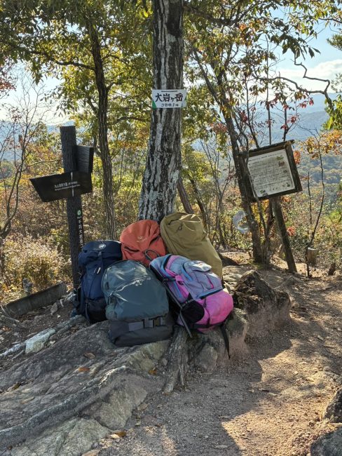 贅沢な登山日和、兵庫県の大岩ヶ岳に向かった。駐車場から約50mの東尾根は、まっすぐに東大岩ヶ岳へと続き、あっという間に山頂へ。低山ながらピーク付近は岩交じりの急傾斜で、特に下りでは登山靴の靴底の滑らなさと自分の太もも頼みの面白い場所。眺望も良し。ということで、当会の会員にはファンも多い山です。
