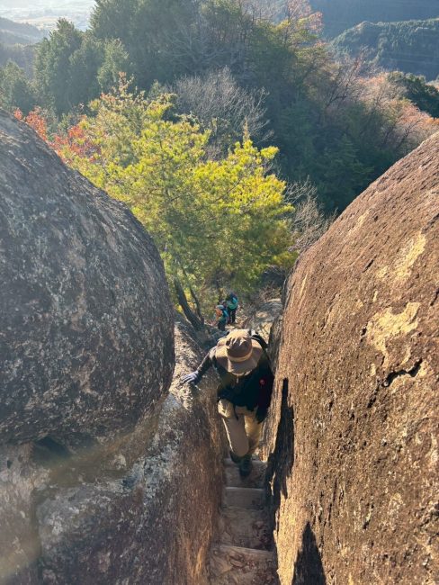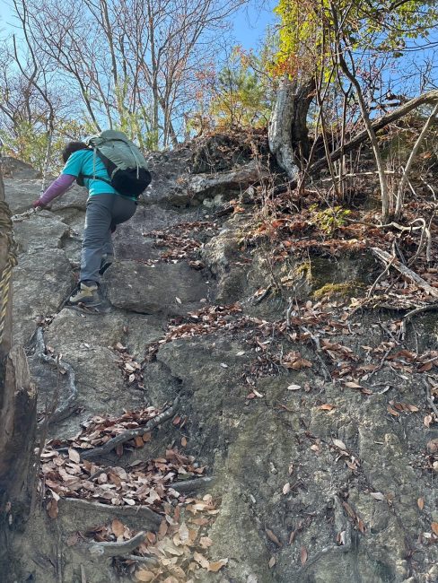 Aコースから下山。達磨岩、マンモスの背、大黒岩を激下りもあり、設置されたロープを使って慎重に。13時過ぎに駐車場へ到着。