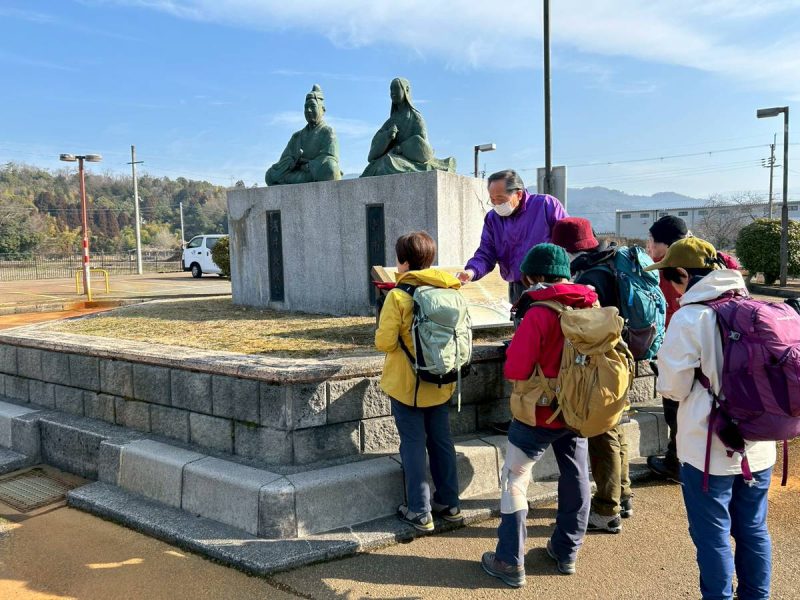 河毛駅前に建つ浅井長政とお市の方の像の前に、ボランティア活動をされている方がおられ、「よく来ていただいた」と言葉をかけていただく。そして、「ここは、山本山・賤ヶ岳、小谷山が一度に見える場所だ」と教えてもらい、今から行くコース説明も受けて、さあ、スタート。