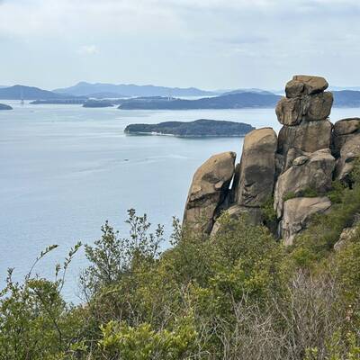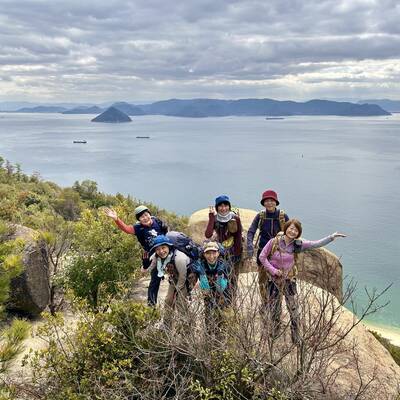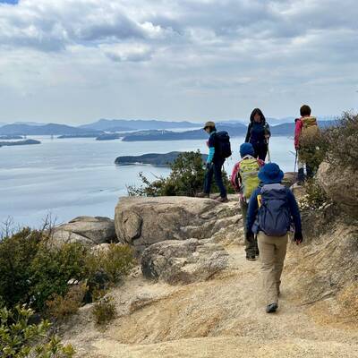 そこから瀬戸内海に浮かぶ美しい『おむすび』を眺めながら、海岸沿いの車道を渋川登山口まで移動する。