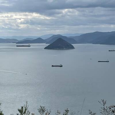 海も船も島も四国連山も空も雲も、目に入る景色のすべてが藍色のグラデーションで、静かなる美しさ。