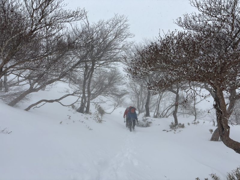国見峠に着くが、ここは雪を下から巻き上げてくるように一段と風がきつい。北谷に入ると風下なので少しはマシか?と進むが、相変わらず。大丈夫か?と心配するようなハイカーが膝から下真っ白にして登ってくる。